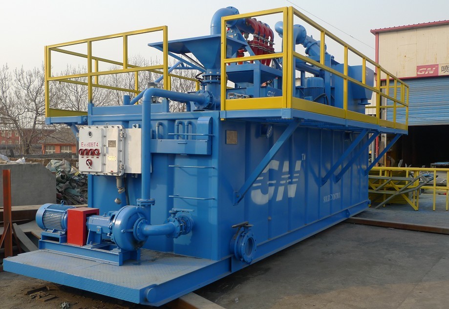 ?印度尼西亞客戶(hù)所要處理的流量是60m3/h,定向穿越系統(tǒng)設(shè)備主要包括 1,ZS63×125-3振動(dòng)篩(其中加上了兩個(gè)10〃 除砂旋流器) 2,CNQ60×160/4-8除泥器 3,射流混漿裝置(混漿漏斗和砂泵) 4, 兩個(gè)配套砂泵提供動(dòng)力裝置 5,泥漿罐及其附件