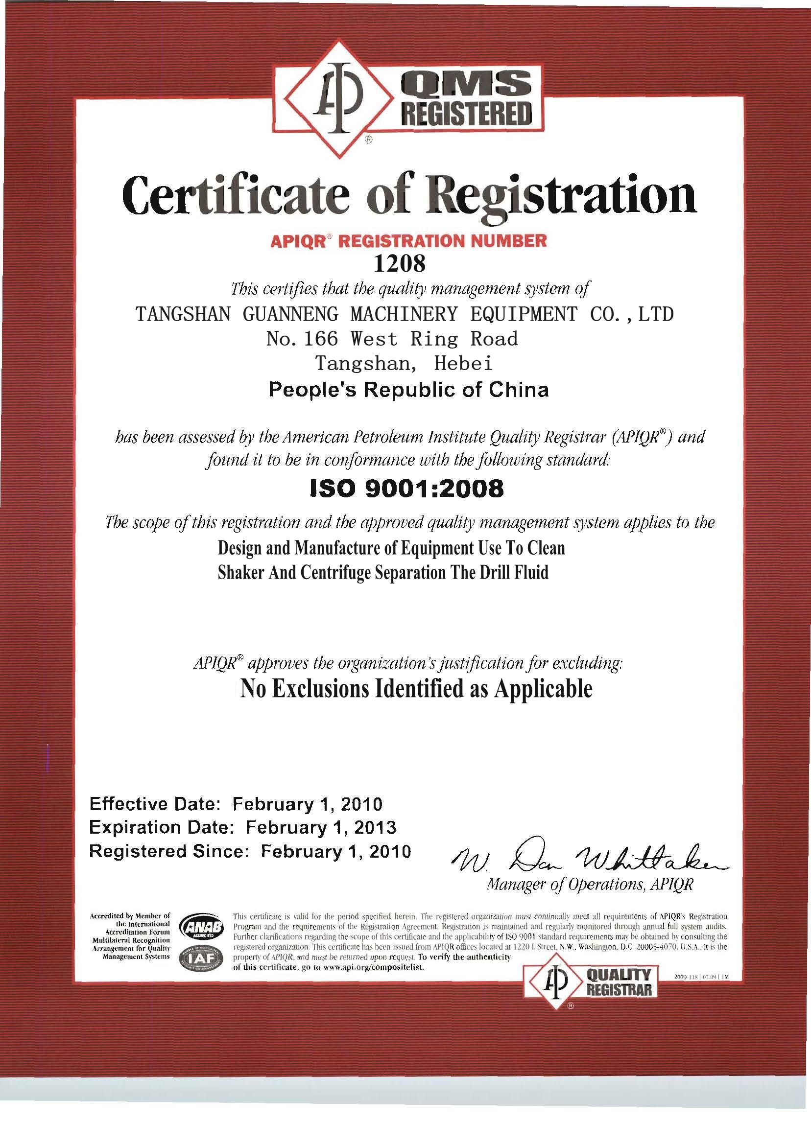 唐山冠能固控API正式通過 |